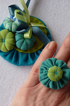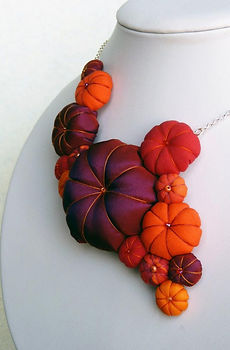 Perles en tissu multicolores aux formes fleuries... ...inspirées par les fleurs de cerisier "Sakura" du japon : La fleur Sakura symbolise la fragilité de la vie tout autant que la joie de la floraison et de la renaissance.